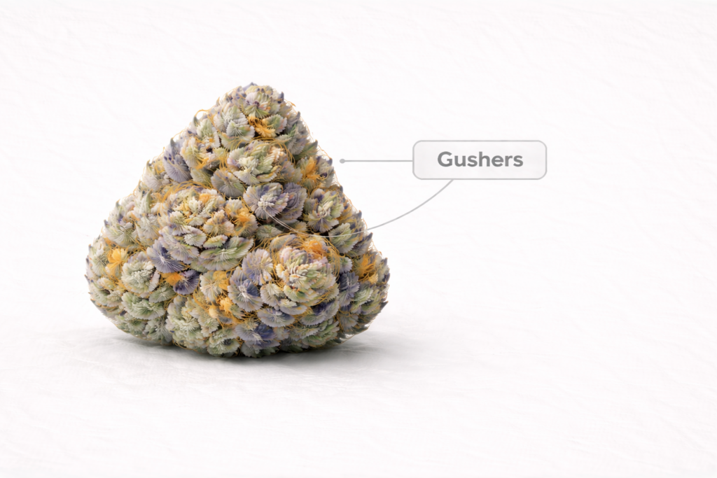Its staying power also comes from flexibility. Gushers works as a flower strain, a vape profile and a concentrate name without losing the core identity people expect from it.
